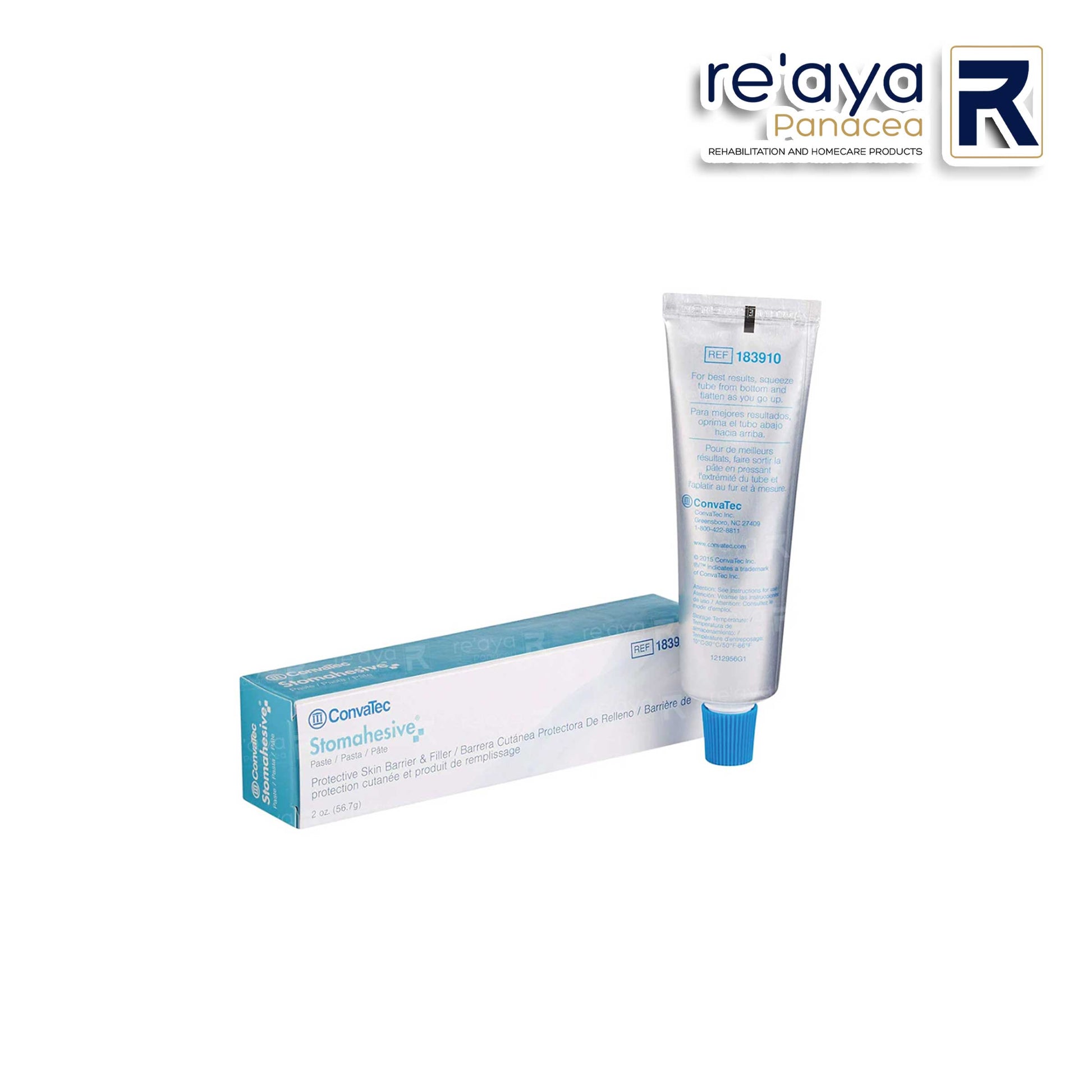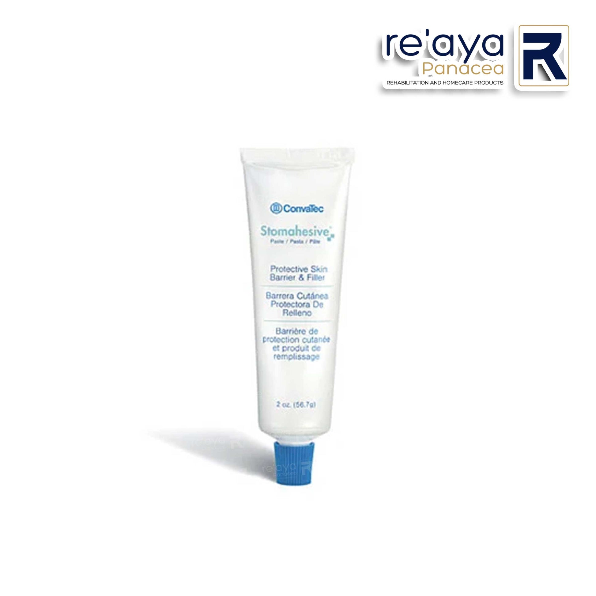 Stomahesive Paste is a hydrocolloid-based protective skin barrier designed to act as a filler or caulk for uneven skin surfaces around the stoma. It helps enhance the fit of the ostomy system, increases wear-time, and protects the surrounding skin from irritation.